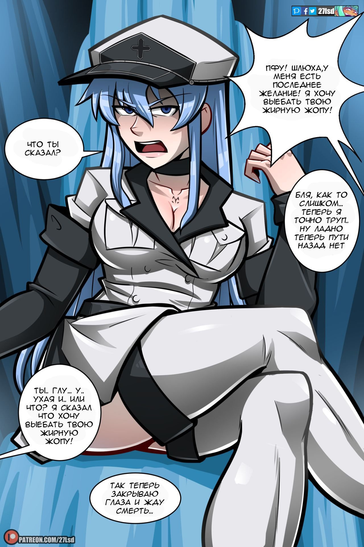 Esdeath Esdeath 11 5 20 Сен 2024 в 8:38 00 0 Поделиться Переводчики: 27lsd Категории: от первого лица Теги: akame ga kill Комментарии 0 Добавить Отправить Комментариев еще нет. Вы можете стать первым Похожие комиксы Esdeath Shogun - Kyoroch Taizaiki / Генерал Эсдес - заточение в Кёрохе 15 46